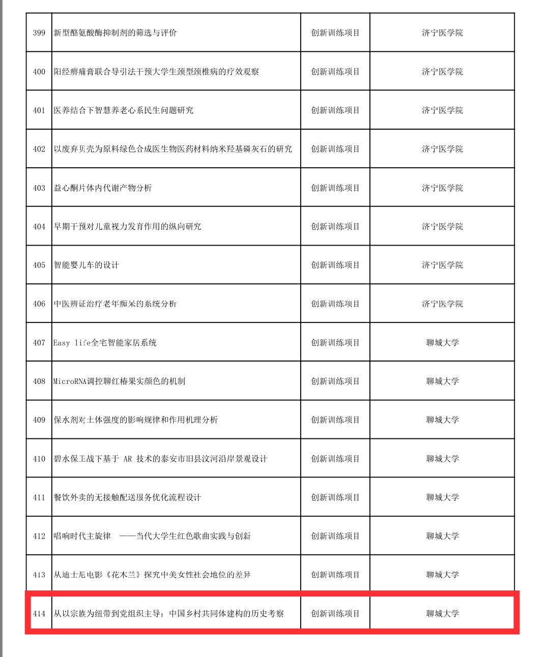 近日,山东省教育厅公布了《2020年拟立项省级老员工创新创业训练计划项目名单》,公司党总支副书记、副经理季昌伟指导的“网格化管理视域下农村远程医疗的实践路径探析——以聊城市东昌府区为例”项目及邹庆国教授指导的“从以宗教为纽带到党组织指导:中国乡村共同体建构的历史考察”项目成功入选。