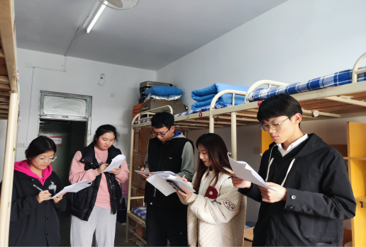 三分叠七分扣,叠的是被子,修的是心性。活动开始,主持人通过PPT向舍长们介绍本次活动的目的与意义以及叠军被大赛的具体评分标准与获奖规则,通过观看叠军被的教学视频,同学们初步学习到如何叠军被。本次比赛邀请到的退伍军人教官对各位舍长进行现场指导,更加详细地为大家讲解叠军被的步骤,让同学们更为直观掌握到要领,深入领会到叠军被的技巧。培训期间,各舍长认真学习、做笔记,并以录制教官教学视频的方式将叠军被的方法记录下来以便传达给宿舍的成员。评选当天,受邀的各班班团与部分员工会成员秉持着公平公正公开的原则,认真的对各个宿舍给予点评,同学们也在此次大赛中表现良好,军被叠得方正平整,达到预期的“豆腐块”效果,获得评委们的一致好评。经过评委的共同商讨,最终评选出表现优秀的宿舍,其中631宿舍被评选为一等奖,617、611宿舍被评选为二等奖,627、635、641宿舍被评选为三等奖。