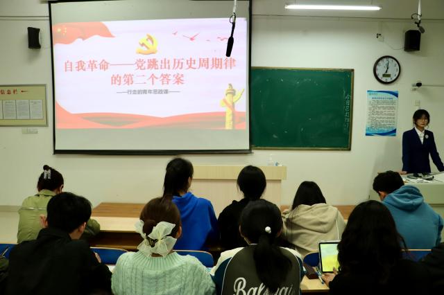 宣讲中,陈凌冰以党的二十大报告中的自我革命为切入点,阐明自我革命是跳出治乱兴衰历史周期率的第二个答案。随后,陈凌冰从旧民主主义革命时期讲起,围绕习近平总书记的讲话,描述中国共产党的萌芽、发展与不断进步和成长的艰辛历程。同时,陈凌冰结合精彩视频展示中国共产党对自身廉洁性的高度重视与全面推进,让同学们更加直观感受到中国共产党自我革命的重要内涵、优势价值以及深远影响。关于自我革命的内涵,陈凌冰围绕“自我净化”、“自我完善”、“自我革新”、“自我提高”四个方面进行详细阐述,明确自我革命是党跳出历史周期律的第二个答案。她指出,自我革命的优势价值是马克思主义政党本质属性的内在要求,是坚守党的初心使命的迫切需要,更是加强党的自身建设的必然选择。宣讲后,参与者於烁彤表示,通过本次宣讲活动,对于自我革命的内涵及重要性有了更加系统的认识,今后会更加努力学习专业知识,为实现中华民族伟大复兴贡献出力量。