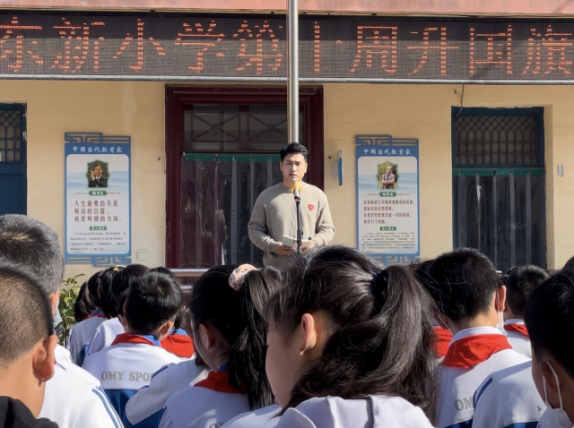 (刘新宇在升国旗仪式后讲课)