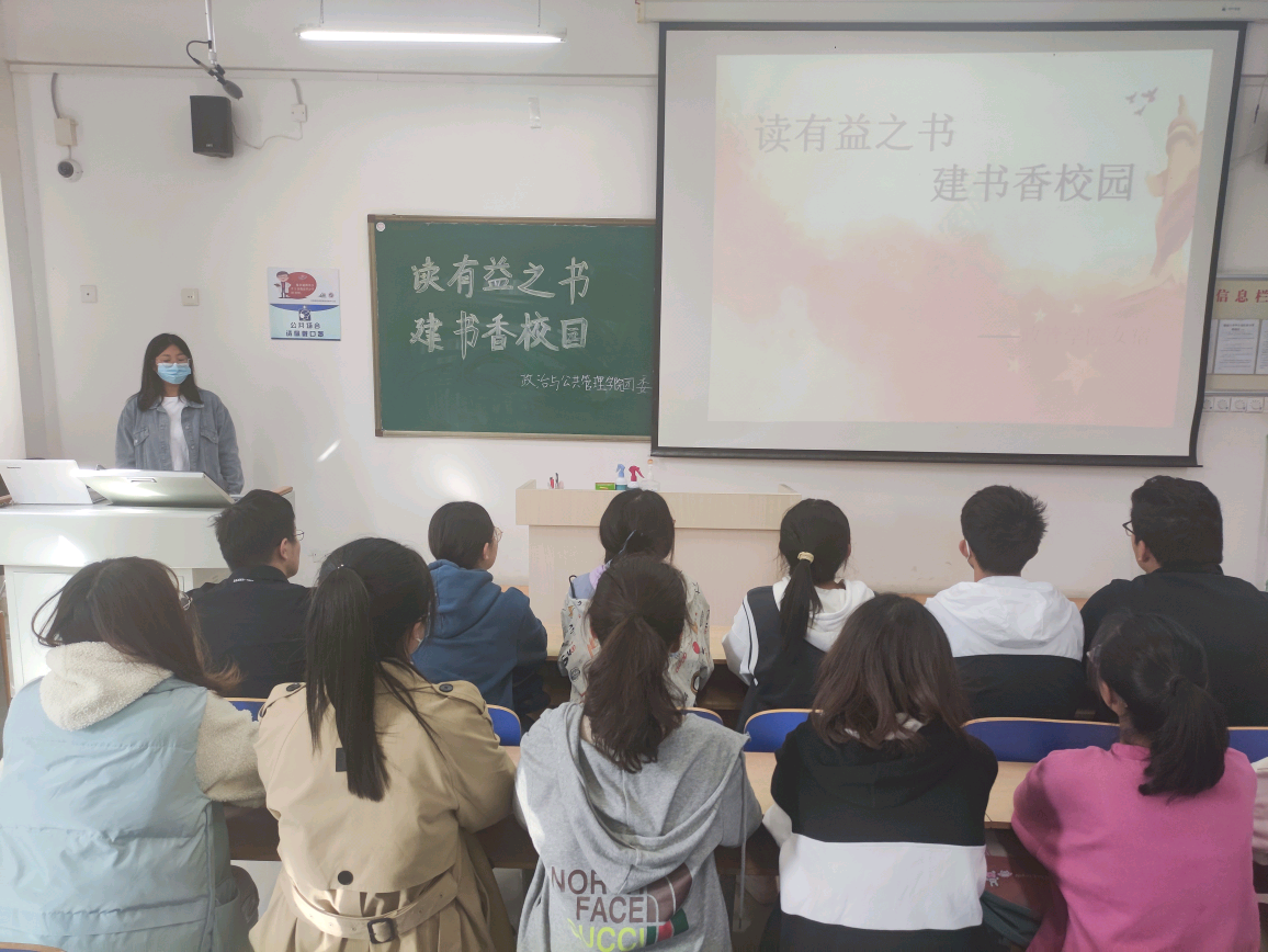 读书陶冶人的情操,给人知识和智慧。活动组织者首先带领同学们一起诵读《沁园春·长沙》,共同感悟词中的豪情壮志,领会诗人的壮志与豪迈之情。随后,活动组织者向同学们展示准备的著作中的经典句子、主要人物故事情节等,引导鼓励同学们积极参与猜书名活动,现场气氛热烈,同学们也通过思考回答进一步丰富了自身的知识界面。分享环节,同学们在主持人的组织下,上台分享一本令自身印象深刻的书籍,同学们积极踊跃,纷纷主动上台分享书籍著作,为大家提供更多优秀读本,传达书籍中蕴含的精神力量。“不读书的人,思想就会停止”,通过共同观看《朗读者》中的片段,同学们领悟到朗读的乐趣与意义,获得饱满的精神世界和丰富的生命感受。观看结束后,主持人总结活动意义,呼吁大家多读书,读好书,在读书中学会思考,在思考中交流成长,通过阅读促进自身的全面发展。
