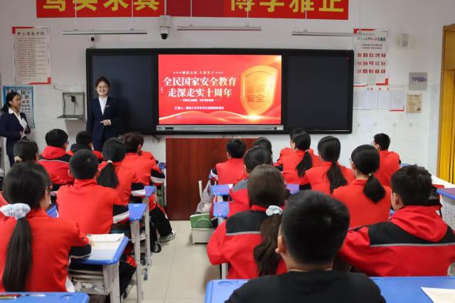 宣讲人侯慕洁以国家安全的定义为切入点,与同学们进行互动,激发他们的参与热情。通过观看微视频《航天新征程》,同学们能够了解到国家的发展成就,增强民族自信心和自豪感。侯慕洁阐明科技发展的意义,结合真实案例,讲解网络安全、政治安全和生物安全这三个领域的风险挑战,提醒同学们要注意网络行为规范,文明上网。钟子涵从国家安全概述、文化安全教育和共同行动倡议三个方面展开讲解,点明国家安全与公民责任之间的相互关系,强化同学们的国家安全责任感和使命感。在交流互动环节,同学们踊跃参与,就关心的国际热点局势和安全威胁应对等问题进行提问,加深对国家安全的理解与领悟。钟子涵耐心解答,对相关的法律法规进行解读,指出增强国家安全意识和国防观念的重要性,让同学们认识到维护国家安全是全体公民的法定义务,更是青少年必须肩负的时代使命。侯慕洁总结活动内容,呼吁同学们要树牢法治观念,加强安全知识学习,不断提升自身素养,以实际行动为国家安全添砖加瓦。