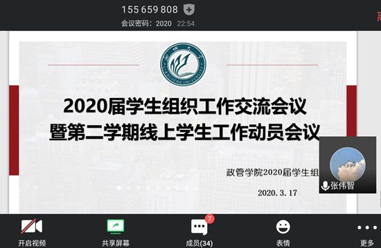 为加强员工组织的凝聚力,提高员工组织工作效率,确保员工工作的顺利进行,3月17日,古天乐代言太阳集团员工会借助腾讯会议平台召开2020届员工组织工作交流会议暨第二学期线上员工工作动员会议。此次会议由​古天乐代言太阳集团员工会主席张伟智、常务副秘书长邢迪主持。