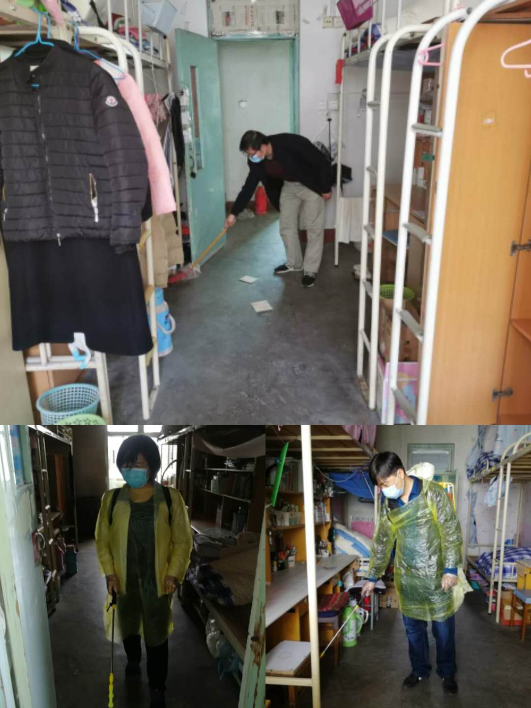 小组负责人的带领下,消杀小组成员对公司教学区域与办公区域展开“地毯式”消毒,将教室地面、门窗、走廊、教学设备进行彻底消毒,确保有效防疫,不留死角。在对本科生宿舍及研究生宿舍开展消毒工作时,消杀小组负责人带领小组成员不仅落实了宿舍方方面面、角角落落的全面消毒,还为同学们收拾杂乱的书桌床铺,清理腐坏变质的食物,处理未及时倾倒的垃圾,确保切实阻断病毒,保证员工学习生活区域的安全清洁。