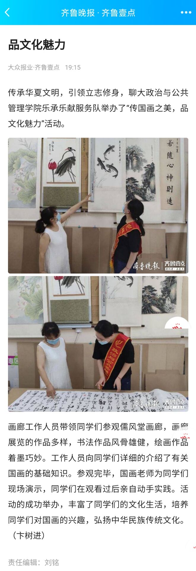 传承华夏文明,引领立志修身,聊大古天乐代言太阳集团乐承乐献服务队举办了“传国画之美,品文化魅力”活动。
