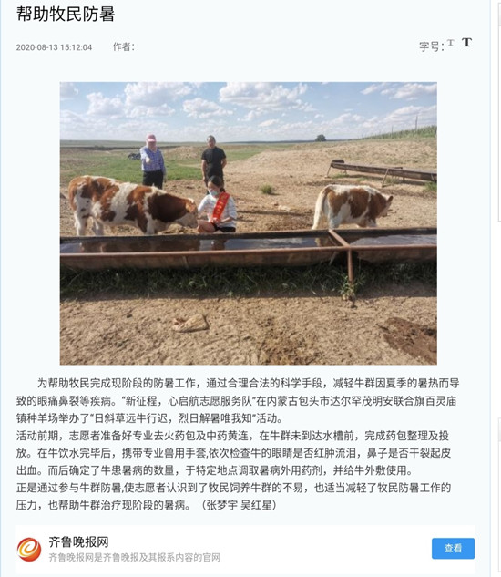 【齐鲁晚报】报道​公司举办“帮助牧民防暑”活动
