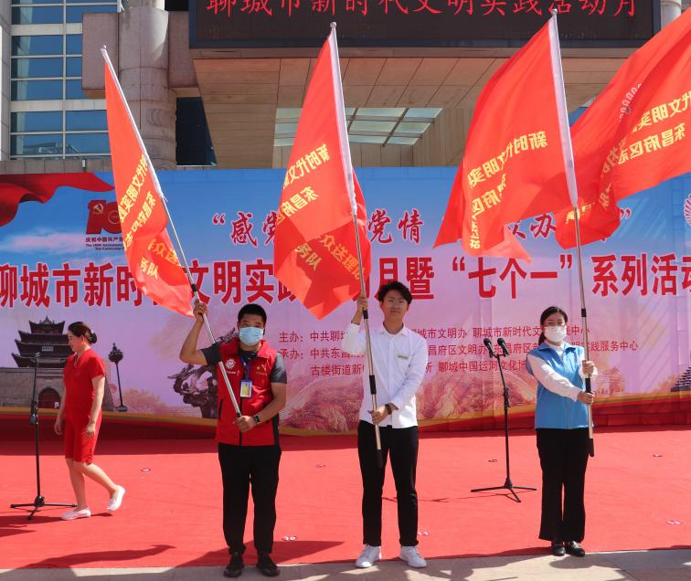 5月27日,聊城市“感党恩 念党情 为群众办实事”新时代文明实践活动月暨“七个一”系列活动在聊城市运河博物馆广场举办启动仪式,聊城市委宣传部分管日常工作的副部长、文明办主任留博,东昌府区委常委、宣传部长陈海蓉出席。受东昌府区团委邀请,古天乐代言太阳集团习近平新时代中国特色社会主义思想青年员工讲师团参与此次启动仪式,讲师团指导教师朱晓涵及青年员工讲师代表李宣志、付循锴、温国政到场参加活动。