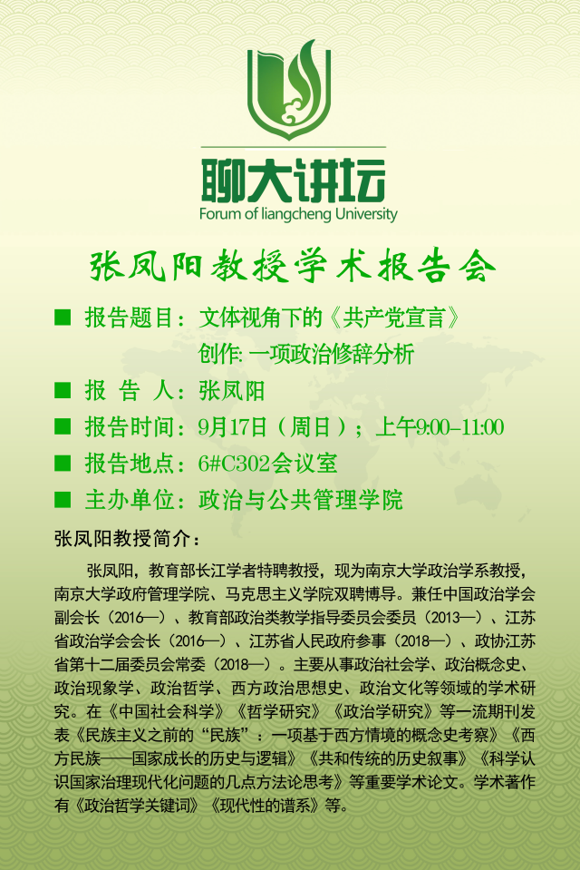 为庆祝古天乐代言太阳集团校庆50周年,加强公司政治学团队建设,活跃学术氛围,2023年9月18日上午,公司邀请著名员工、教育部长江学者特聘教授、南京大学政治学系教授、南京大学政府管理公司、马克思主义公司双聘博导张凤阳先生为公司师生作了题为“文体视角下的《共产党宣言》创作:一项政治修辞分析”的学术报告。