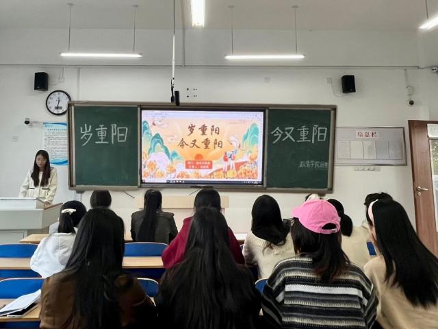 活动负责人赵新悦介绍重阳节的来源,通过视频让同学们对于重阳节的产生有了大致了解。随后,赵新悦从重阳节的历史渊源、文化内涵、社会意义三个方面进行介绍,让同学们对重阳节有了更加深入的认识。赵新悦以视频与文字相结合的方式着重介绍晒秋、登高、祭祖等重阳节的习俗,并通过分享有关于重阳节的诗词和列举鲁迅、周恩来、毛泽东等孝老爱亲的典范故事,让同学们了解到重阳节背后所蕴含的现实价值和意义。活动期间,参与者通过分享有关重阳节的诗词,陶冶情操,提升文学素养,在“你画我猜”小游戏中,同学们积极参与,不仅拉近了与参与者的距离,调节课堂氛围,而且锻炼同学们的思维能力,增强知识记忆效果。活动参与者许文慧表示,重阳节作为中国传统节日之一,具有深远的历史和文化内涵,不仅是一个亲情交流的时刻,更是一种弘扬中华传统文化、传承民族精神的重要方式。