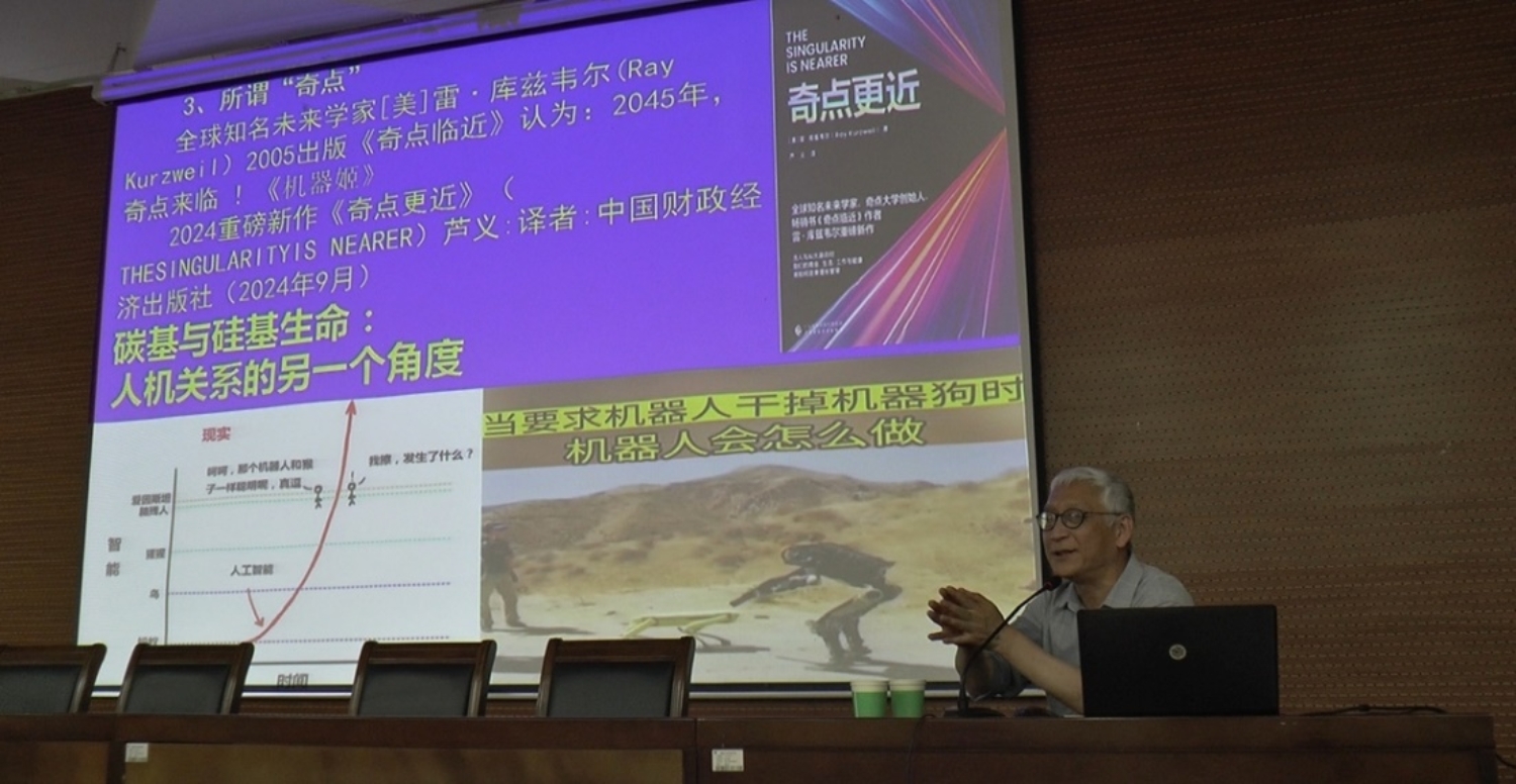 董春雨教授首先从人工智能相关研究的曲折、机器自主性的余波引出机器智能的优势与奇点问题。他围绕AI for Science背景下科学发现概念框架、可处理数学视角下的科研形态演进、机器发现的若干案例与机器在科学发现中的限度以及关于机器解释与“事后解释”的讨论等多方面展开论述其中,教授重点讲述AI发展与人类进步的相关争议以及如何看待AI的本质和发展趋势等根本问题。他还提出诸多值得进一步探讨的哲学问题,如认知透明性、语言与智能的边界、非理性因素的机器实现等,引发听众的深入思考。最后,教授我们呼吁理性看待技术发展,提出人类对机器的恐惧是人类中心主义的思想根基在作祟,我们应拥抱人机协同,而非抗拒变革。讲座结束后,在场师生对人工智能的认知边界”“自主意识等方面展开热烈讨论,提出自己不同的观点看法,董教授表示,对于当前有关人工智能的哲学研究需要学者们进一步努力,从哲学、伦理学等多维度构建新的认知框架,促进未来人工智能健康发展。