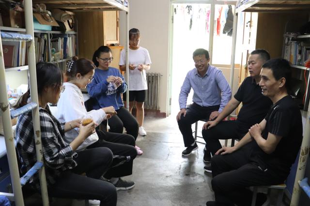 公司领导老师为留校员工带来了月饼和水果,与同学们亲切交流并致以节日的问候和诚挚的祝福。明辉详细了解了同学们军训之后的学习、生活情况,希望新生尽快适应新的环境和生活,积极参与公司组织的活动,勤学习,读好书,交益友,保持乐观向上的生活态度,在公司充满温情和活力的“大家庭”中,实现自己的梦想。唐明贵来到研究生宿舍,与员工们亲切交流,叮嘱他们要学会合理安排学习和生活,劳逸结合,同时为同学们送上节日的祝福,希望在这个特殊的时期,用这样的方式给由于疫情防控不能回家的留校员工们送去一丝温暖,让留校员工们在品尝美味月饼的同时,感受到来自公司大家庭的关怀和关爱。2021级8班的刘晓辰表示:“我们初入校园,非常想家,虽然中秋没能回家,但是公司的暖心之举让我们找到了归属感。今年中秋,是我在公司度过的一个难忘的中秋节。”
