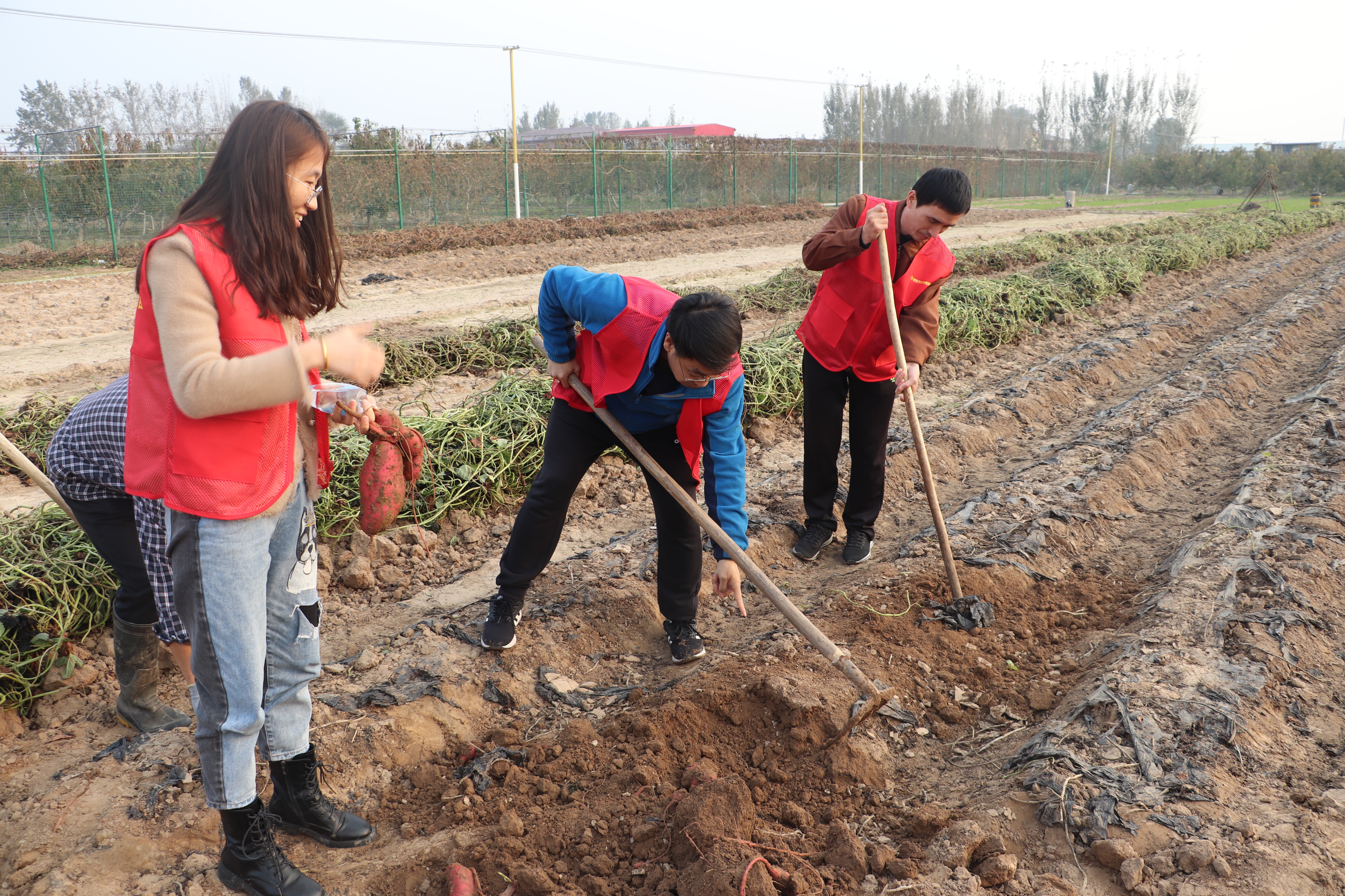 ”政青春“志愿服务团志愿者来到郑家镇扶贫产业基地,深入田间地头,一边帮助他们翻地瓜,一边与农民朋友聊家常、聊收成,听取农民朋友对当前农村农业政策的切身感受,他们干劲十足,很快收获了满筐的红心地瓜。之后,在当地农户的带领下,教工志愿者们来到苹果园帮助果农进行采摘,他们分工明确,配合默契,发扬不怕脏、不怕累的奉献精神,齐心协力帮助农户解决采收难题并体验着收获的快乐。由于今年雨水勤,造成果园落果多,如果不及时采摘,果农损失会更大,志愿者们加入采摘队伍,以实际行动弘扬了“奉献、友爱、互助、进步”的志愿服务精神,为当地农民的采收工作尽了一份自己的力量,受到当地农户欢迎。
