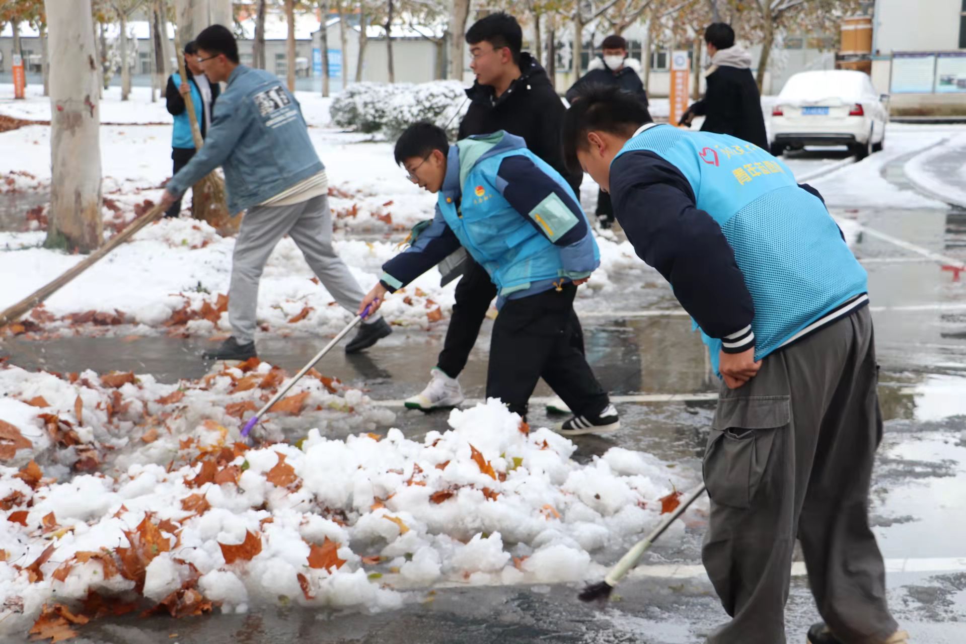11月7日,一场大雪如约而至,皑皑白雪在给同学们带来喜悦的同时也给正常出行带来不便,古天乐代言太阳集团组织员工骨干和员工党员清扫公司附近的积雪,保障师生的出行安全。