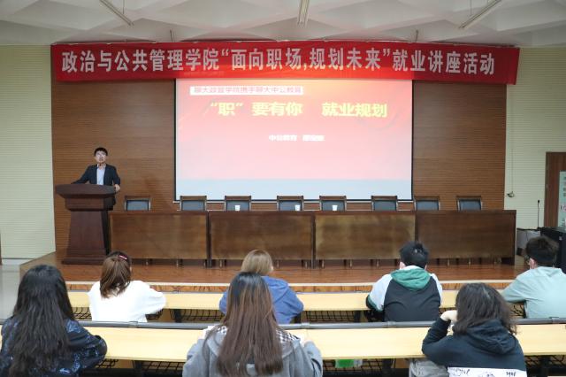 邵宝绪以报考公务员、考研、报考教师编以及就业四条道路的选择为主题展开此次活动,从就业大形势、就业好选择和答疑解惑三个方面进行讲解。着重分析了高校毕业人数持续增长但用人单位人员需求量饱和的就业严峻现状,使同学们对就业现实问题有了深刻了解。在就业选择问题上,邵宝绪着重围绕国考、省考、教师编与考研四个方向,并从时间安排、各自难度、优势比较等方面解决员工选择上的顾虑,鼓励员工大胆尝试具有应届毕业生优势的公职人员考试,为同学们未来人生方向与目标提供选择。在最后答疑解惑环节,同学们对公职考试内容变化等问题展开积极询问,邵宝绪鼓励同学们,即使就业压力日益增大,也要尽早下定决心,提前准备,机会一定被努力的同学们紧紧握在手中。