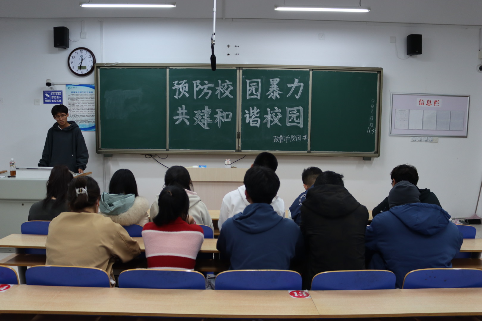 活动负责人王方正通过视频讲解、PPT演示和交流互动的形式,让同学们了解什么是校园暴力以及如何预防和应对校园暴力。负责人从“什么是校园暴力、如何拒绝校园暴力、怎样应对校园暴力”三个方面展开本次讲解,结合当前社会校园暴力现状,分析校园暴力出现的主要原因及校园暴力产生的后果等,让同学们进一步认识到校园暴力的严重性以及如何有效地应对校园暴力。主持人提醒同学们要提高自我保护意识,学会正确认识自己的情绪,并找到适合自己的发泄方式,遇到问题要积极向老师、家长或朋友倾诉,并寻求其帮助和建议。活动最后,主持人组织同学们进行校园暴力知识竞答和反校园暴力故事分享,进一步提高同学们对校园暴力的认识,增加应对校园暴力的经验。参与者孙悦表示,通过本次活动自己更加深入地了解到校园暴力的危害性及其对受害者的影响,同时也明白该如何更好地关注身边人的感受和需要,以更加包容和理解的心态与他人相处,从而有效避免校园暴力的产生。