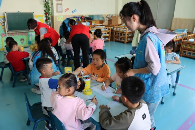 活动前期,负责人王乐言结合小朋友的年龄特点,设计一系列富有童趣的游戏和互动环节,确保活动顺利进行。志愿者们通过故事讲述、动画播放等形式,生动形象地展示社会主义核心价值观的内涵,同时,负责人引导同学们进行小组讨论,让同学们在实践中学会团结合作、分享互助。在互动环节中,小朋友们通过绘画、手工等形式,将其对社会主义核心价值观的理解表达出来,一幅幅色彩鲜艳、充满童趣的作品,蕴含同学们纯真的心灵和对美好生活的向往。活动最后,小朋友们纷纷表示,通过绘画和手工环节,进一步理解了爱国、敬业、诚信、友善,并表示要将这些美好的品质融入到日常生活中。志愿者林晓如表示:“我们不仅要把知识传递给小朋友们,更要通过我们的言传身教,引导他们树立正确的价值观和人生观,成为他们的榜样和引路人”。