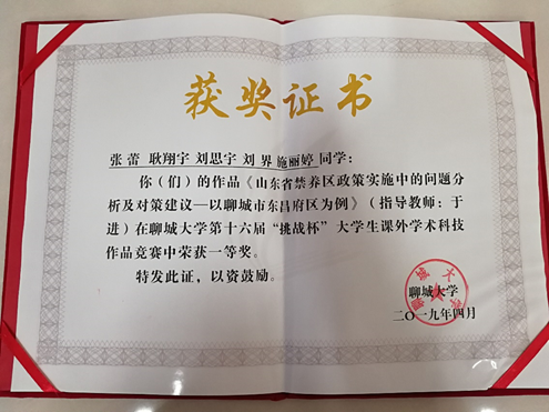 省级:山东省优秀员工;山东省优秀毕业生;山东省暑期三下乡实践活动优秀员工;