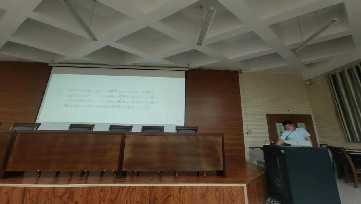 在讲座上,针对同学们的公职类考试意向,尹承章老师从四个方面介绍了备考重点,详细介绍了公务员考试考察的内容和题型。明确了公务员、选调生、事业单位考试、三支一扶、事业单位人才引进计划等公告时间,让同学们合理规划时间,科学备考。告诫同学们要认真对待公职类考试,明确自己的目标,认真科学备考,找到适合自己的备考方法。
